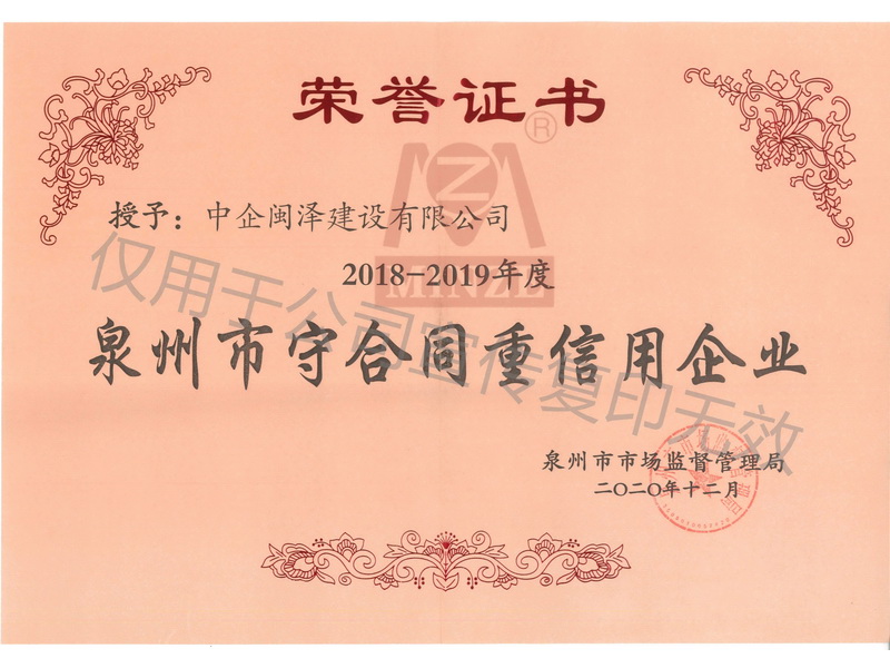守合同重信用企業(yè)榮譽(yù)證書(shū)