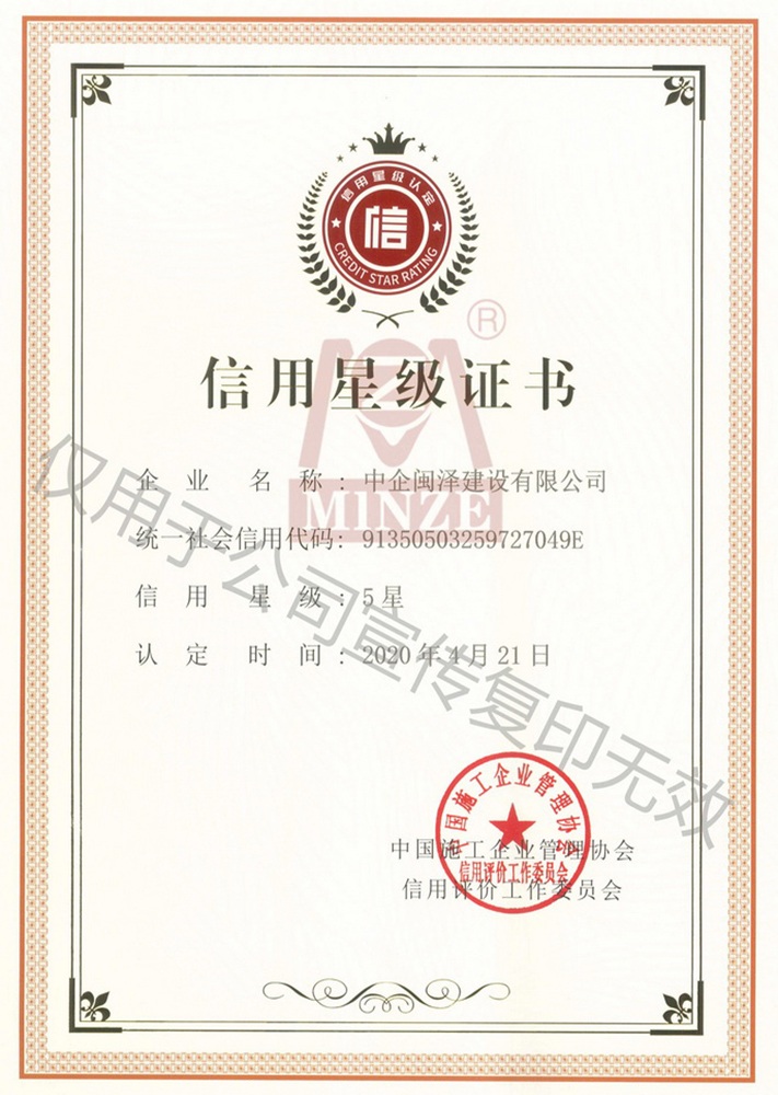 信用星級(jí)證書(shū)